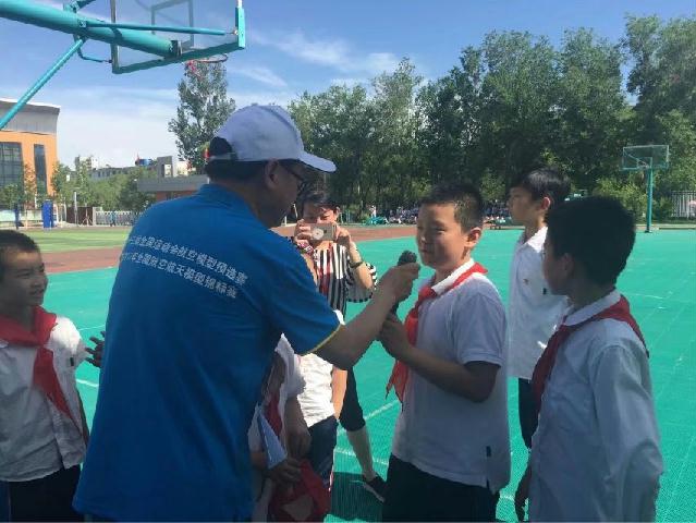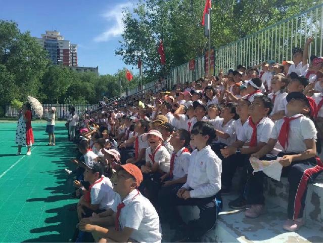 下午四点,克拉玛依湛蓝的天空阳光灿烂,参加活动的航模冠军们早早来到了校园,迎接他们的是学校师生们热情的掌声。 操场上全校1100师生欢聚一堂,克拉玛依文体局、教育局、科协的领导也来到了现场。当主持人介绍到世界冠军卢征、杨钧、李士其、张兆年、郭兆峰和全国冠军卢浩、孙海钢、吴为飞等人时,现场又一次爆发出热烈的掌声。